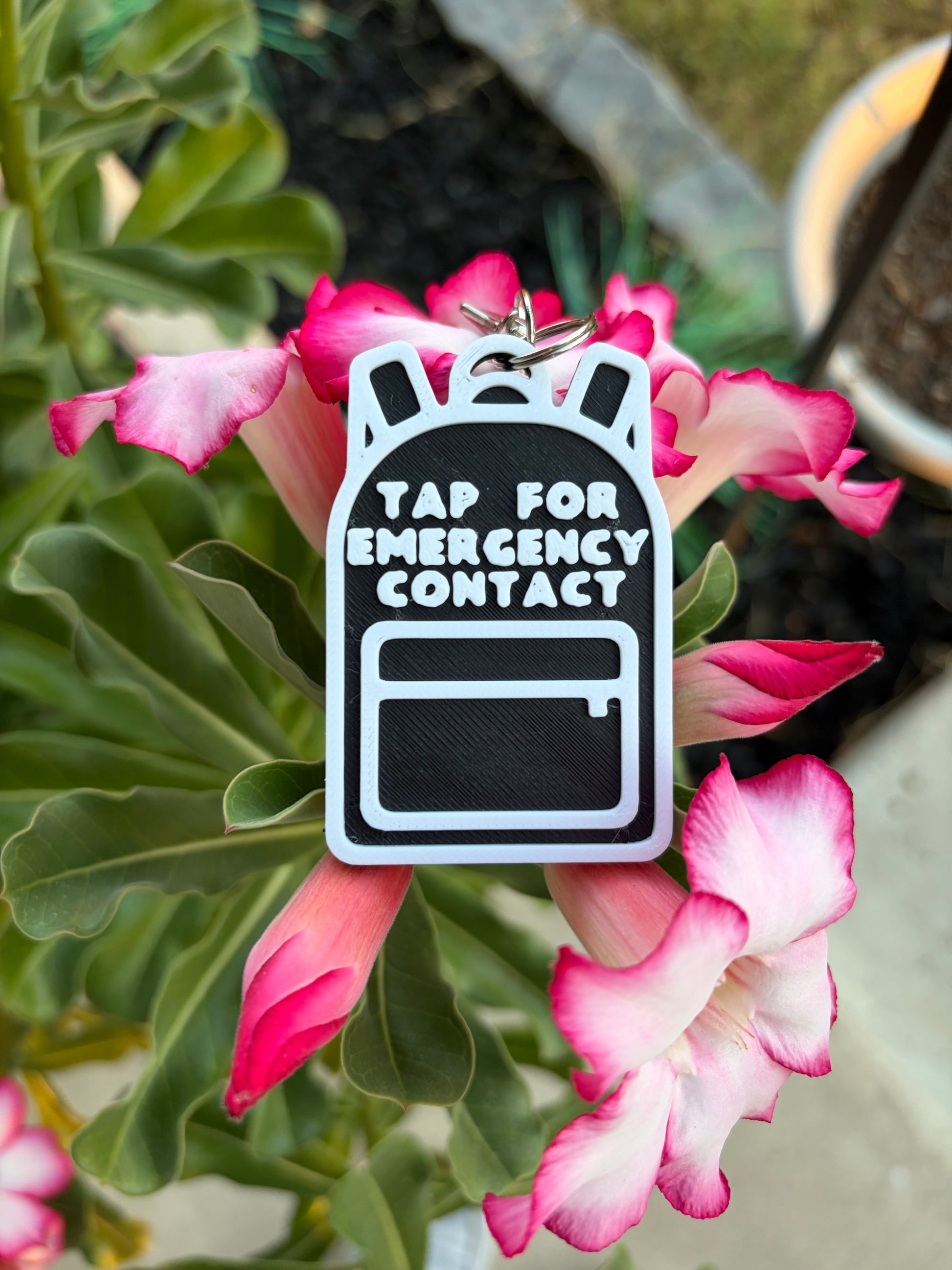 Scan to contact guardian in the event of an emergency. Can add to call or text. Perfect for the school year and or field trips to hook on belt loop.