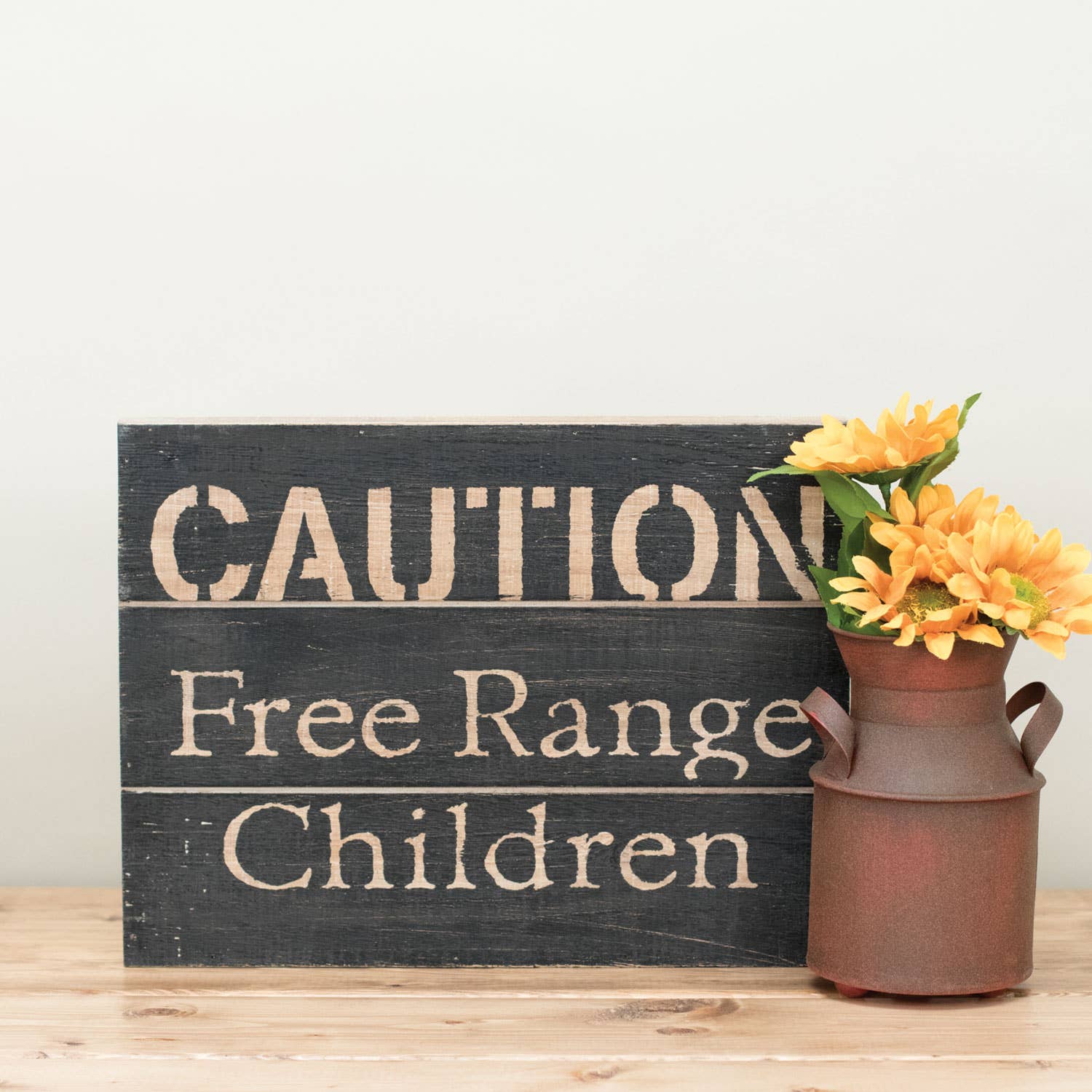 Rustic "Caution Free Range Children" Wood Wall Decor